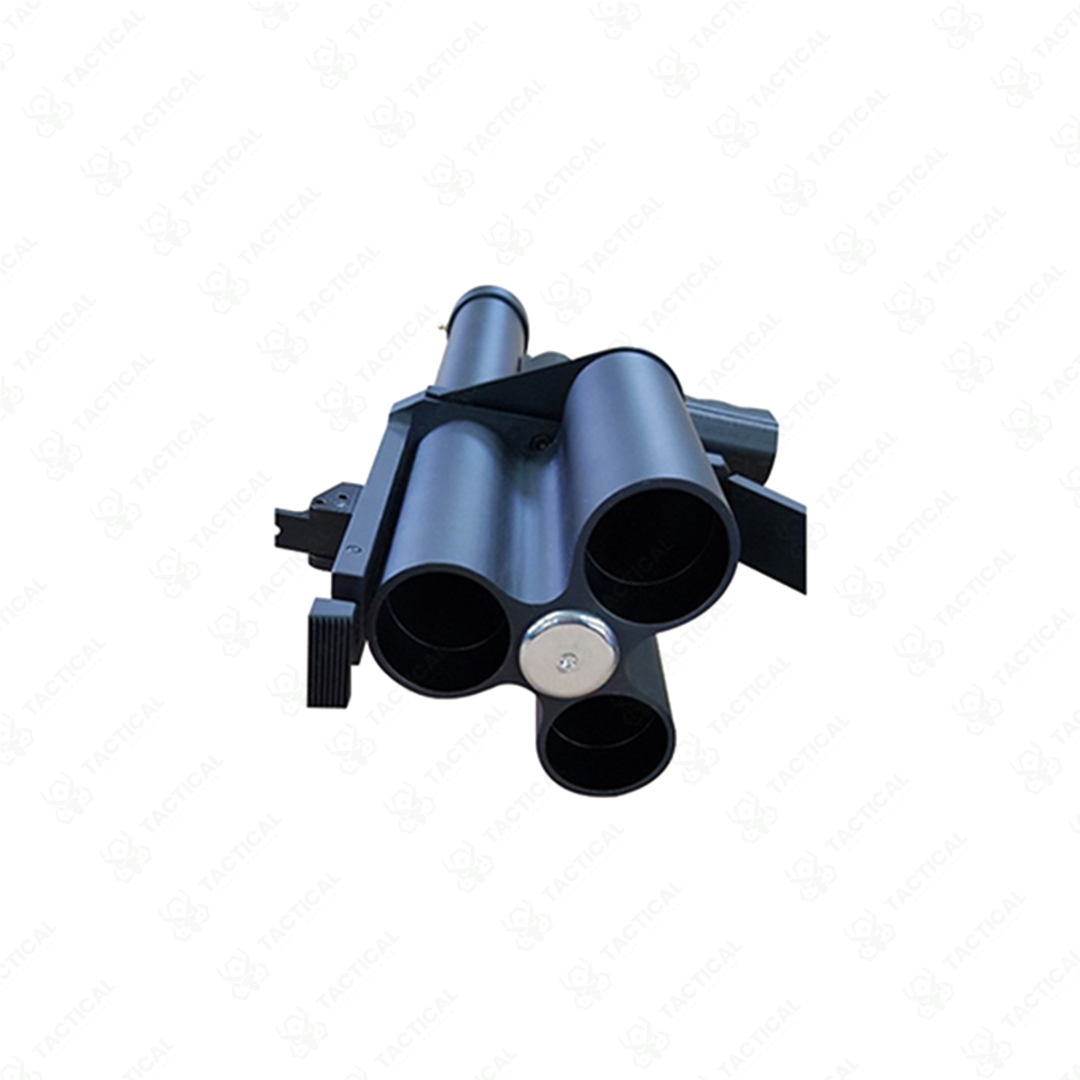 A rugged 3-shot 38mm launcher built on a pump-action revolving cylinder system, engineered for rapid sequential firing in high-pressure crowd-management operations.