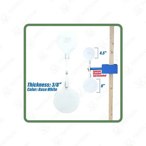 The 5/16″ spinners respond to handgun and rimfire ammunition only. The 3/8″ configuration requires 5.56 NATO or greater bullet energy to achieve full rotation on single shots. The 1/2″ paddles handle ammunition generating up to 3,000 foot-pounds of energy at distances of 100 yards or beyond. Color-coded identification distinguishes each thickness variant during range setup.
