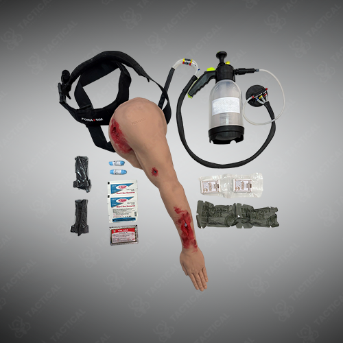 Arm Training Simulator is a realistic, portable medical training aid for practicing bleeding control, tourniquet use, wound packing, and closure techniques.