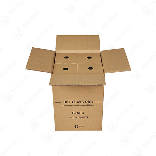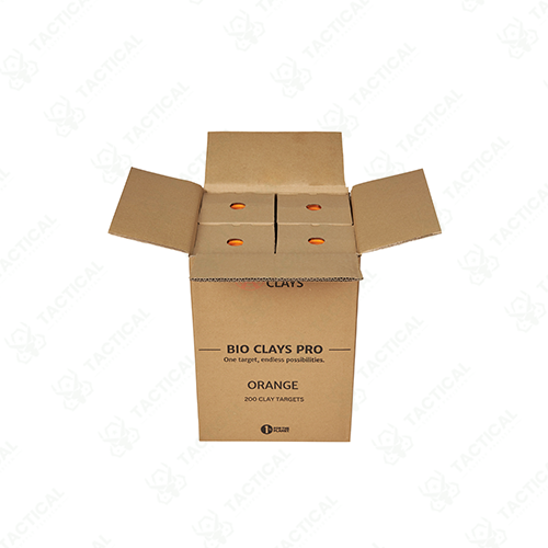 The Bio Clays Pro measures 11 centimeters in diameter with a 0.6-centimeter thickness and weighs 20.6 grams per disc. Each package contains 200 clay targets arranged in four stacks of 50 units and measures 25 by 25 by 35 centimeters with a total weight of 4.8 kilograms. The material contains less than 0.2 milligrams of polycyclic aromatic hydrocarbons per kilogram, significantly below the 50-milligram EU regulatory threshold.