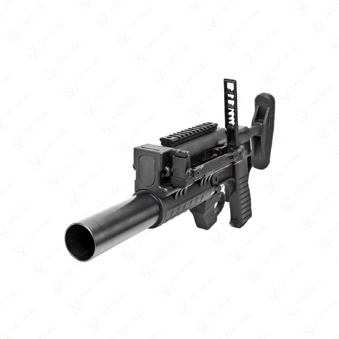 Low‑recoil, lightweight 40×46 mm LV single‑loader, usable stand‑alone (retractable stock) or under‑barrel; for smoke, CS, rubber or HE rounds.