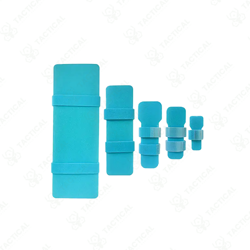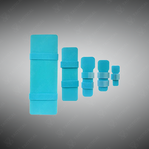 The IV Armboard consists of a flat malleable aluminum core encased in foam padding, available in five size variants ranging from 67 x 26 millimeters for pediatric applications to 260 x 90 millimeters for adult forearm immobilization. The aluminum substrate measures 1.5 millimeters thick, providing sufficient rigidity to prevent joint flexion while remaining bendable to conform to arm contours during initial placement. Closed-cell foam padding covers both surfaces in 5-millimeter thickness, creating cushioned contact that distributes pressure across the immobilization area and prevents skin breakdown during extended wear periods.