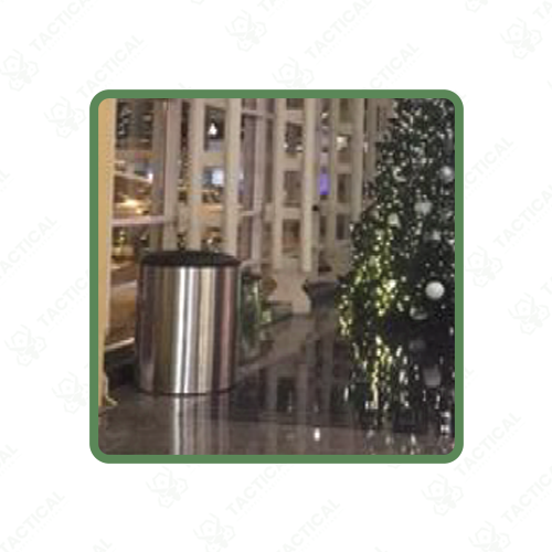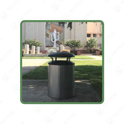 The BCR is designed to replicate the visual profile of a standard public trash receptacle, allowing placement in civilian environments without alerting the public or signaling security hardening — while its internal structure absorbs and confines blast effects and fragmentation from explosive devices placed inside.